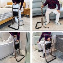 Mobile Aufstehhilfe, Aufsteh- und Sitzhilfe, Stützgestell mit 4 Haltegriffen, Ältere Sitzhilfe Stand Bett Aufstehhilfe Bettgriff Höhenverstellbarer Haltegriff für Senioren Stand, belastbar 136kg